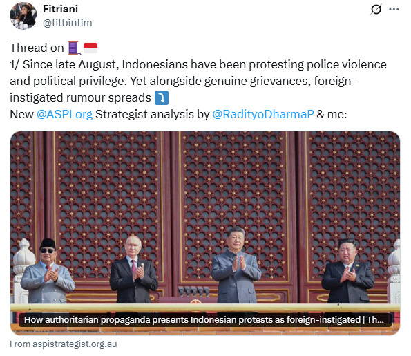 How authoritarian propaganda presents Indonesian protests as foreign-instigated