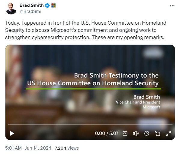 Microsoft President Brad Smith testify before US lawmakers, accepting responsibility for security issues revealed by a government advisory board's investigation into recent China-linked hacks, amid growing concerns over the tech giant's ability to protect its products from nation-state cyberattacks. Axios
